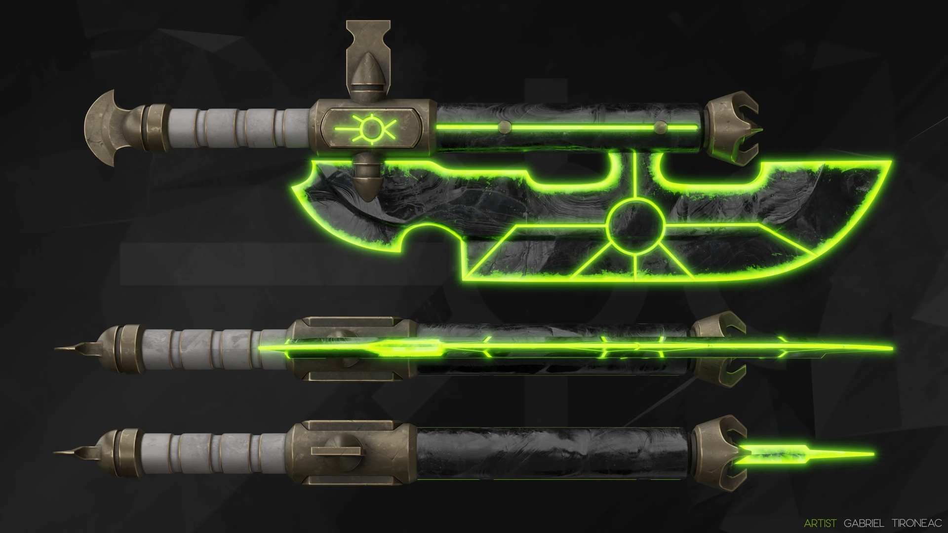Working on a fan art Warhammer 40K small CGI animation. Finished modeling the Necron Lychguard's Dispersion Shield and Hyperphase Sword.